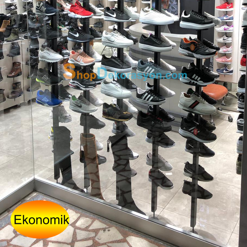 Düz Ayakkabı Tutucu Metal Profilli ve çift slot delikli sistem üzerine takılmaktadır